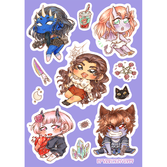 A bunch of cute demon OCs. ♥ Ø 37 mm glossy button badges, cut and pressed by hand.
