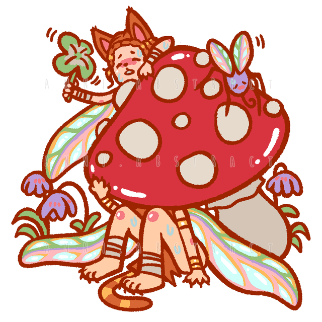 A glossy vinyl die-cut sticker of some fairy kittens based on my own feelings towards summer. Was part of a fairycore sticker stamp rally before it ended up here, heh.