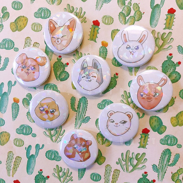 Button badges of our favourite gang! ♥ Ø 37 mm, glossy, cut and pressed by hand.