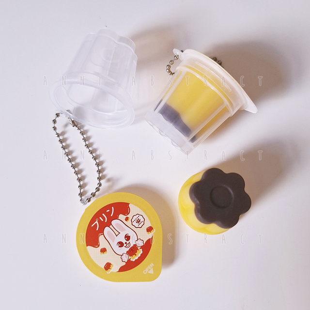 A little pudding container charm with a removable, scented squishy, about 3.5 cm in size. Enjoy Leebit's favourite things: (quokka) pudding and squishing soft things (not limited to cakes, we don't discriminate).